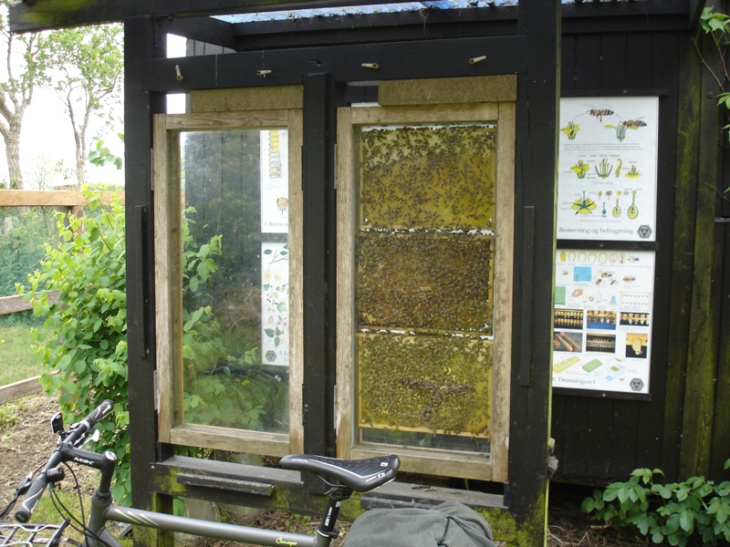 I sommerperioden er der en til to bifamilier i et observationsstade lige op ad bigården.